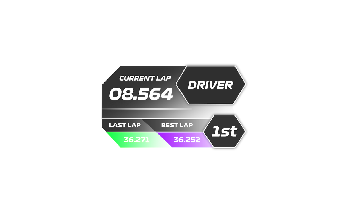 Lap Counter / Countdown Clock is octagon shaped to match the geometric theme